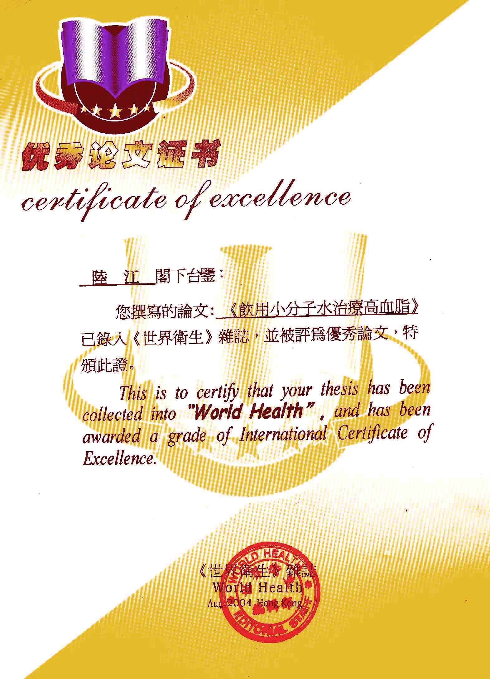 一、創(chuàng)造了在家在職場使用方便的微小分子團水器具。在世界上首先用此理療方法,大規(guī)模地成功地逆轉和消除動脈粥樣硬化,確實祛俆高血壓和冠心病與糖尿病,使患者恢復動脈和心臟及胰島的健康,可消除因細胞缺水使器官衰弱而形成多種器官的缺水性病癥,并使健康人可預防和減緩動脈粥樣硬化,減少心腦血管病,具有重大的社會經(jīng)濟和戰(zhàn)略意義。
