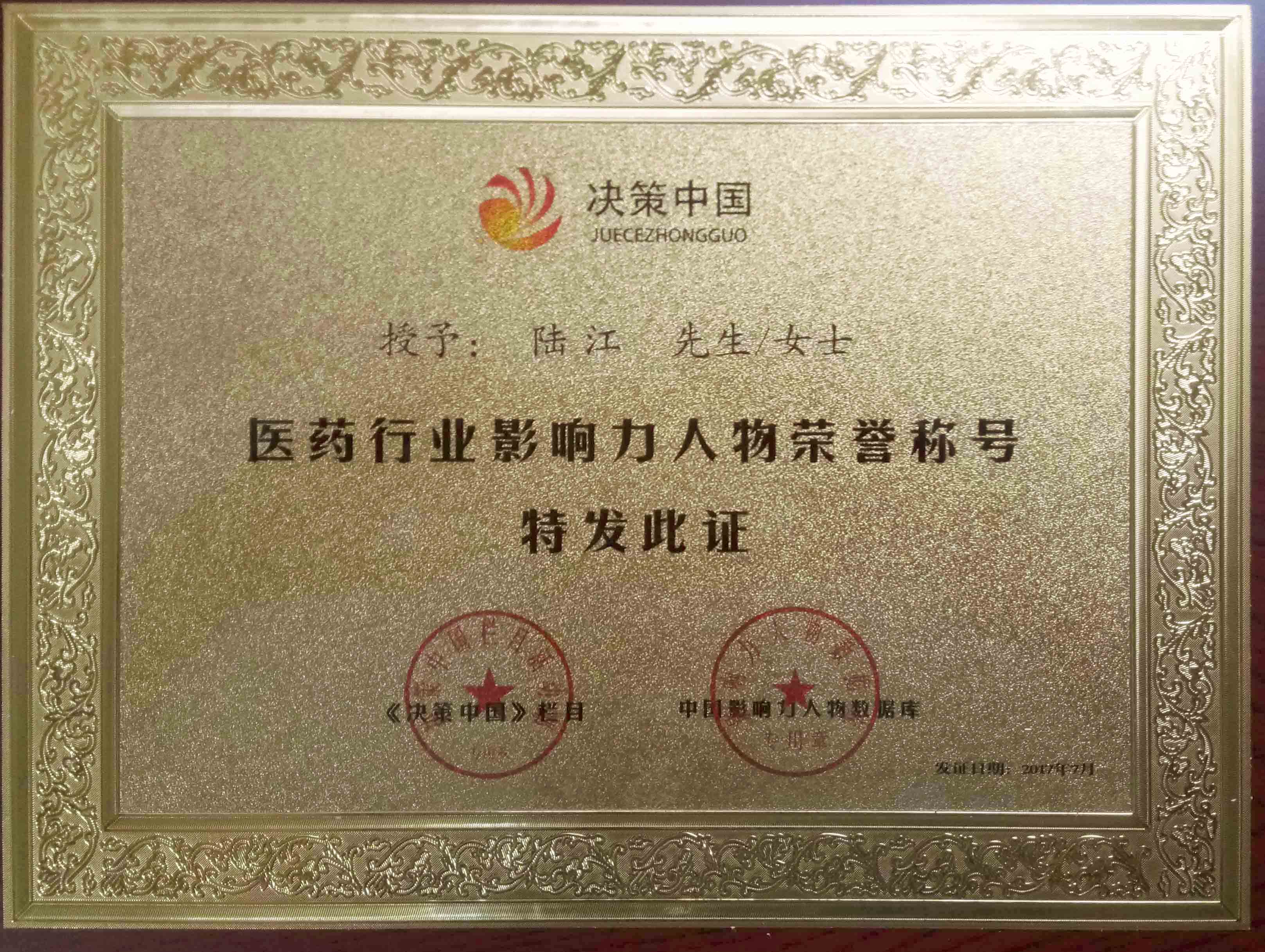 陸江榮獲引領行業(yè)發(fā)展杰出貢獻人物證書 --------卓康公司榮獲全國質(zhì)量、服務、信譽AAA級品牌證書